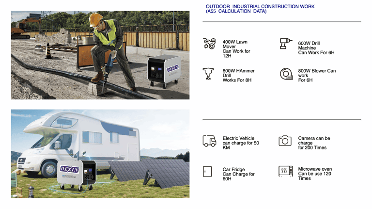 DEXIN A Series systems are built with automotive-grade LiFePO₄ cells, delivering 4,000–10,000 charge cycles and an expected service life of up to 10 years. The sealed, anti-corrosion battery module is designed for durability in homes, workshops, and outdoor environments.